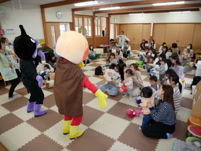 令和6年度のワイワイひろばの活動が始まりました。今回はアンパンマンとバイキンマンが遊びに来てくれ、一緒に踊ったり、ゲームをしたり、写真を撮ったりしました。最後にアンパンマンとバイキンマンがお菓子まきをしてくれ、たくさんお菓子が拾えてみんな嬉しそうでしたね!