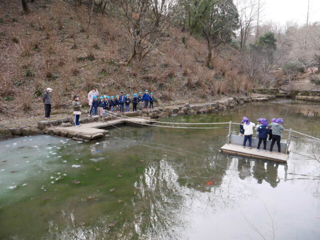 今回のおにぎりピクニックは、美濃加茂市にあるみのかも健康の森に行きました。まずは、割りばし鉄砲やスマートボール、ストラックアウトやバトミントンなどで遊んだ後、遊具で遊び、虹のトンネルを抜けて池に向かいました。池は朝の冷え込みで凍っていましたが、いかだに乗って渡りました。おにぎりを食べてから午後からは777段の階段に挑戦し、全員が頂上まで登り切りましたよ!