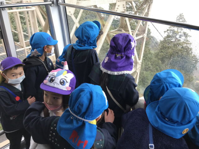 今回のおにぎりピクニックは、金華山登山をしました。園バスに乗って岐阜公園へ行き、七曲り登山道を登って頂上を目指しました。小雨が降るあいにくの天気でしたが、全員が元気に頂上まで登り、岐阜城をバックに記念写真を撮りました。頂上で食べたみたらし団子もとっても美味しかったね!下りはロープウェイに乗って、あっという間に下山しました。一緒に登ってくださったお父さんお母さん、ありがとうございました。