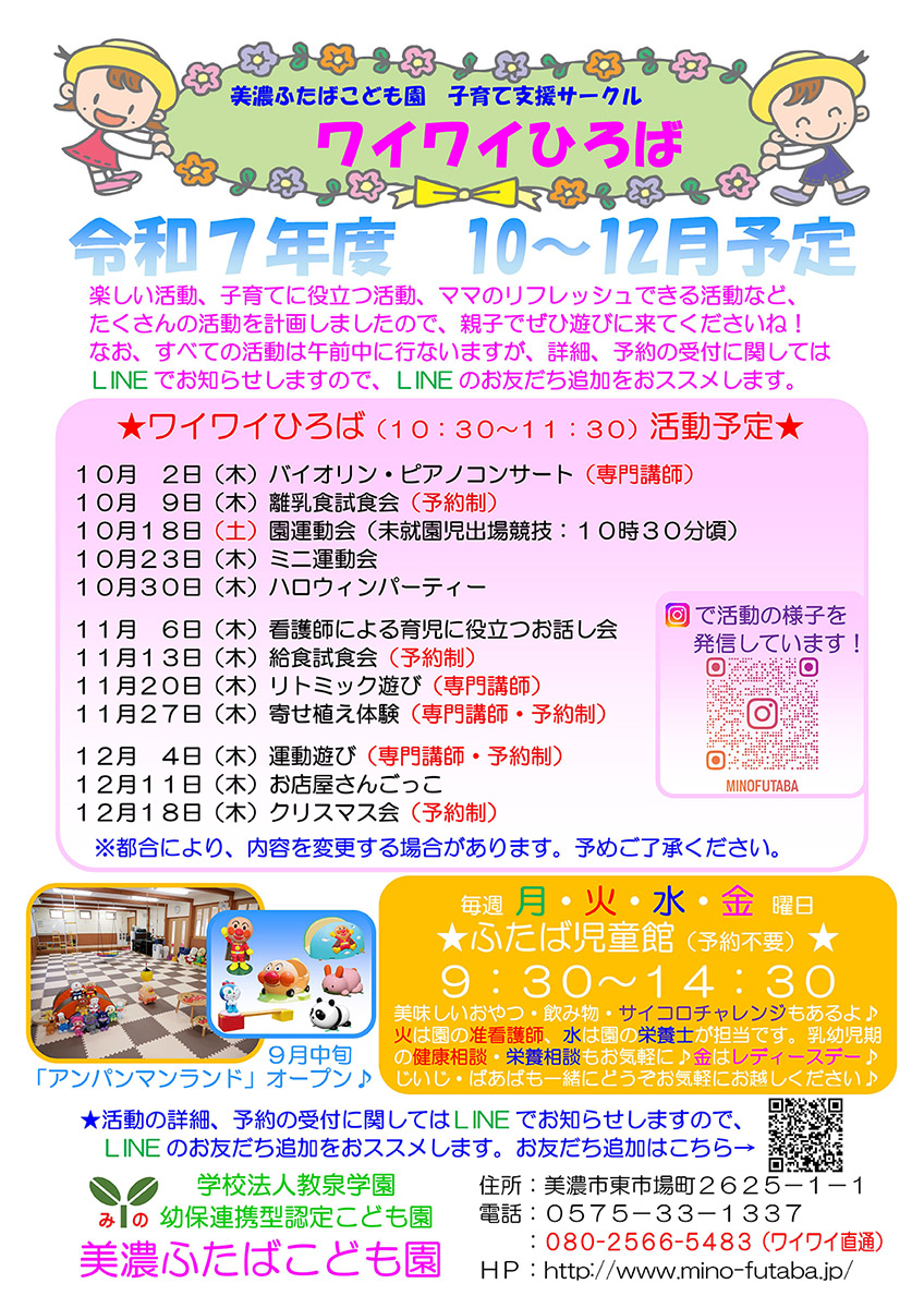 美濃ふたばこども園では、未就園児のお友だち対象の子育て支援サークル「ワイワイひろば」の
